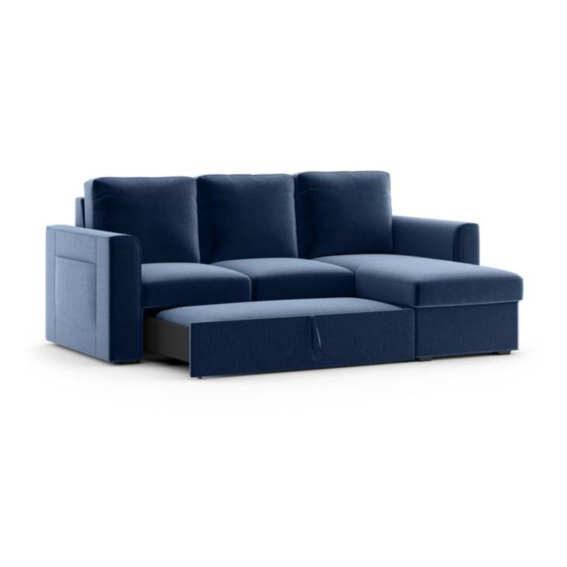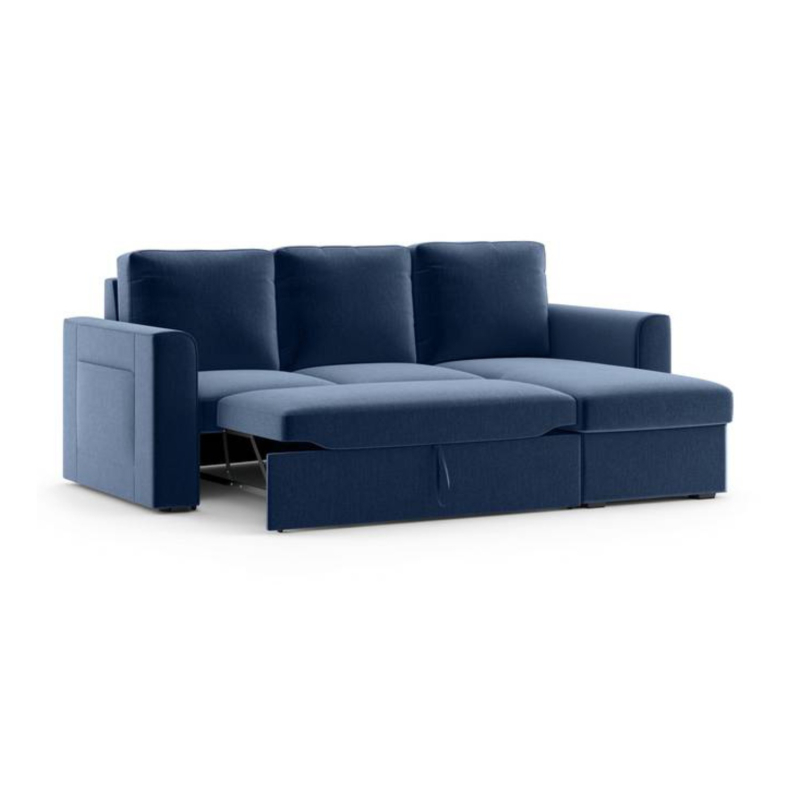 Kowloon Sectional 3 Seater Pull Out Sofa Cum Bed In Lapis Blue Colour