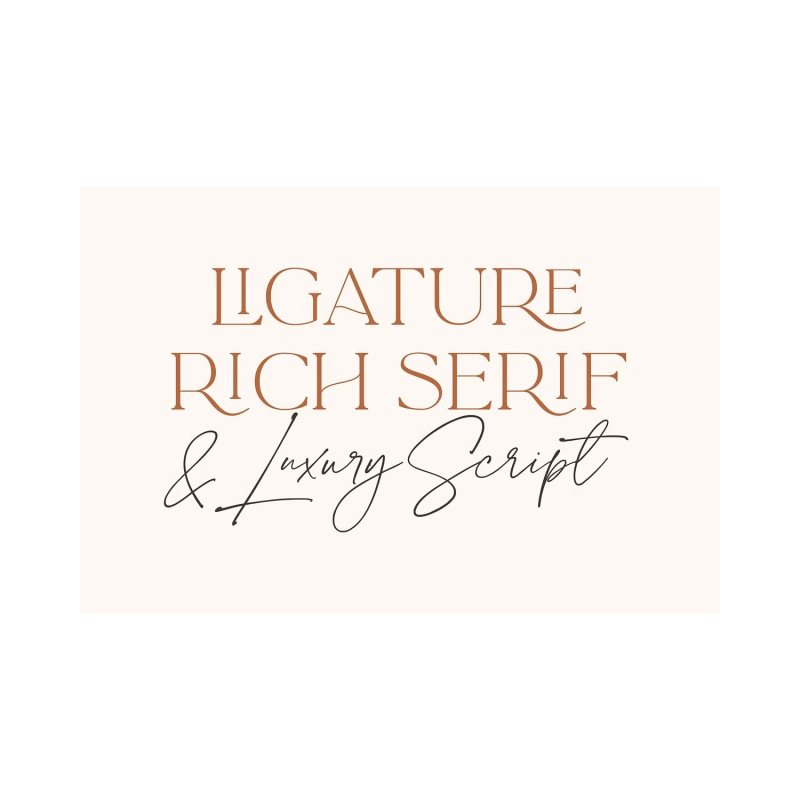 Indulge yourself in a luxurious typography pairing with La Luxes; a classic font duo consisting of an elegant Script & ligature-rich Serif. Also included in this product are 10 bonus logo templates, allowing you to easily edit the designs you see in the images above and create stunning logos in minutes. (Logo templates require Adobe Photoshop or Adobe Illustrator to open).