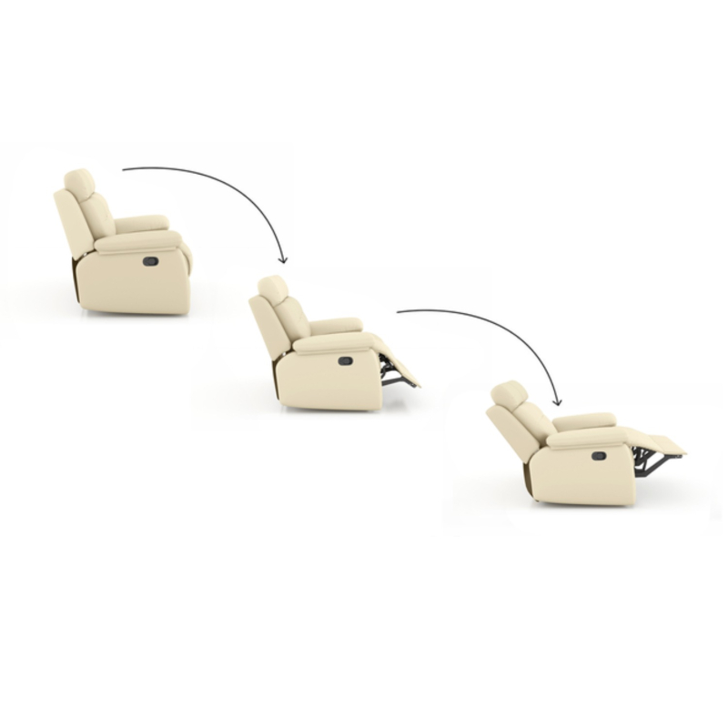 • A perfect blend of style and functionality, this transitional style 3 position manual recliner comes with a smooth glide mechanism, puffed armrests and a cushioned headrest that will help you relax and stretch in comfort.
