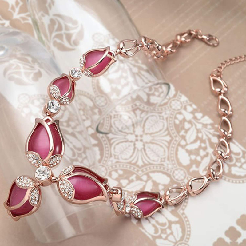 Rose Gold Tulip Design Earrings Necklace Jewellery Set